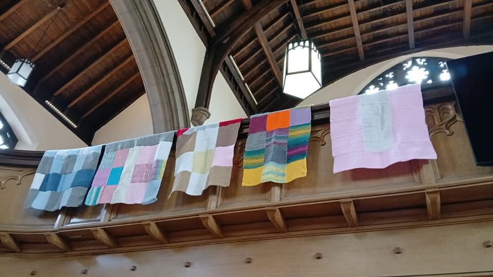 People associated with our congregation have been involved both in knitting and crocheting squares, and also sowing together squares knitted and crocheted by others. You can see some of their work in the accompanying photos.