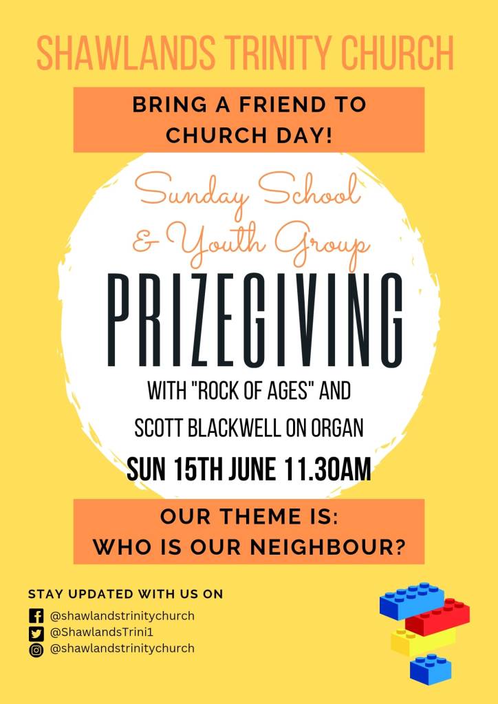 We will end our Session of Sunday School and Youth Group on 15th June with our All Age Prizegiving Service and would love it if as many of you as possible could join us. Please invite a friend – it is Bring a Friend to Church Day.