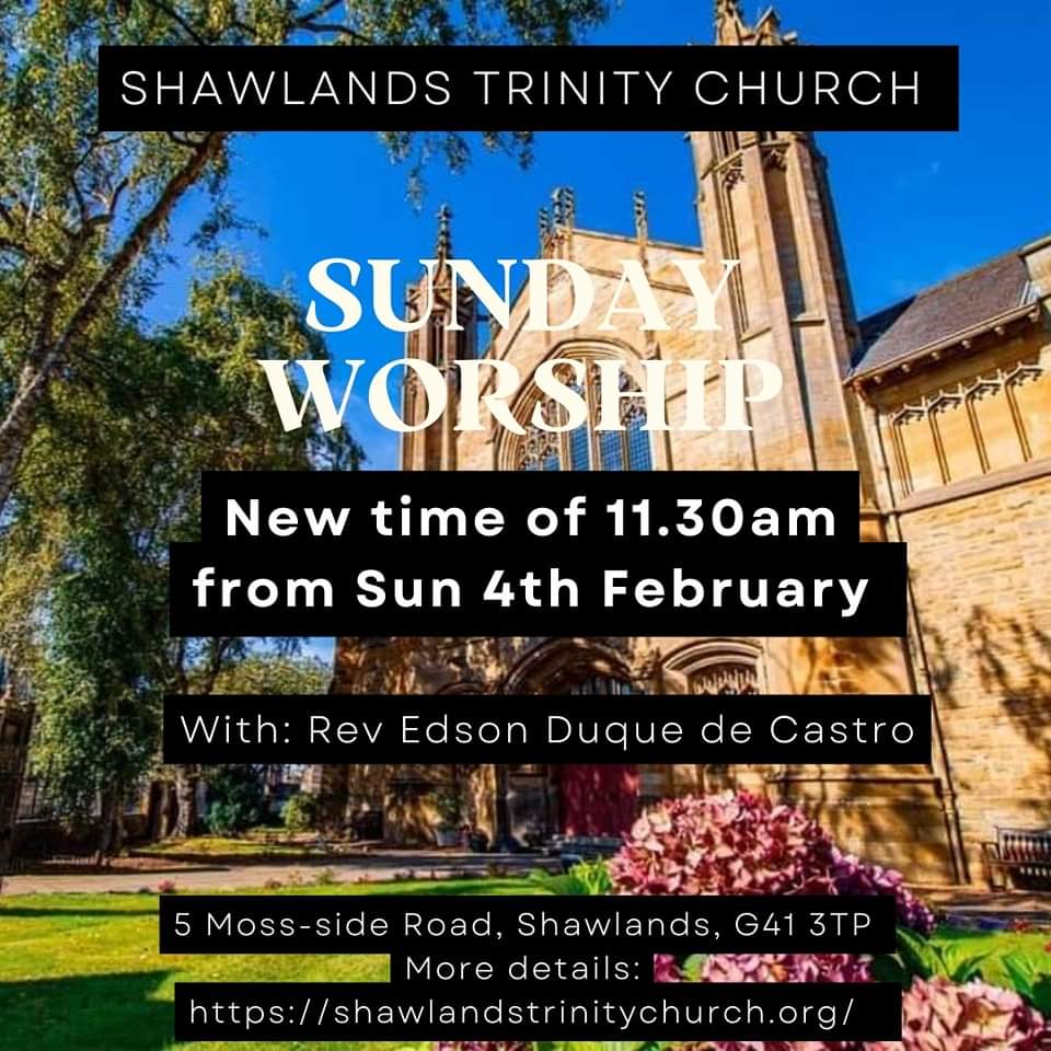 Exciting news that we have recruited a minister to serve as a locum for both Langside and Shawlands. His name is Rev Edson Duque, who for the last year has successfully helped Garrowhill and Bailleston Churches become a linked charge. So, his leading worship and his experience will be a great help. Edson will begin leading us in worship on Sun 4th February and until then the Worship Group will continue leading services.